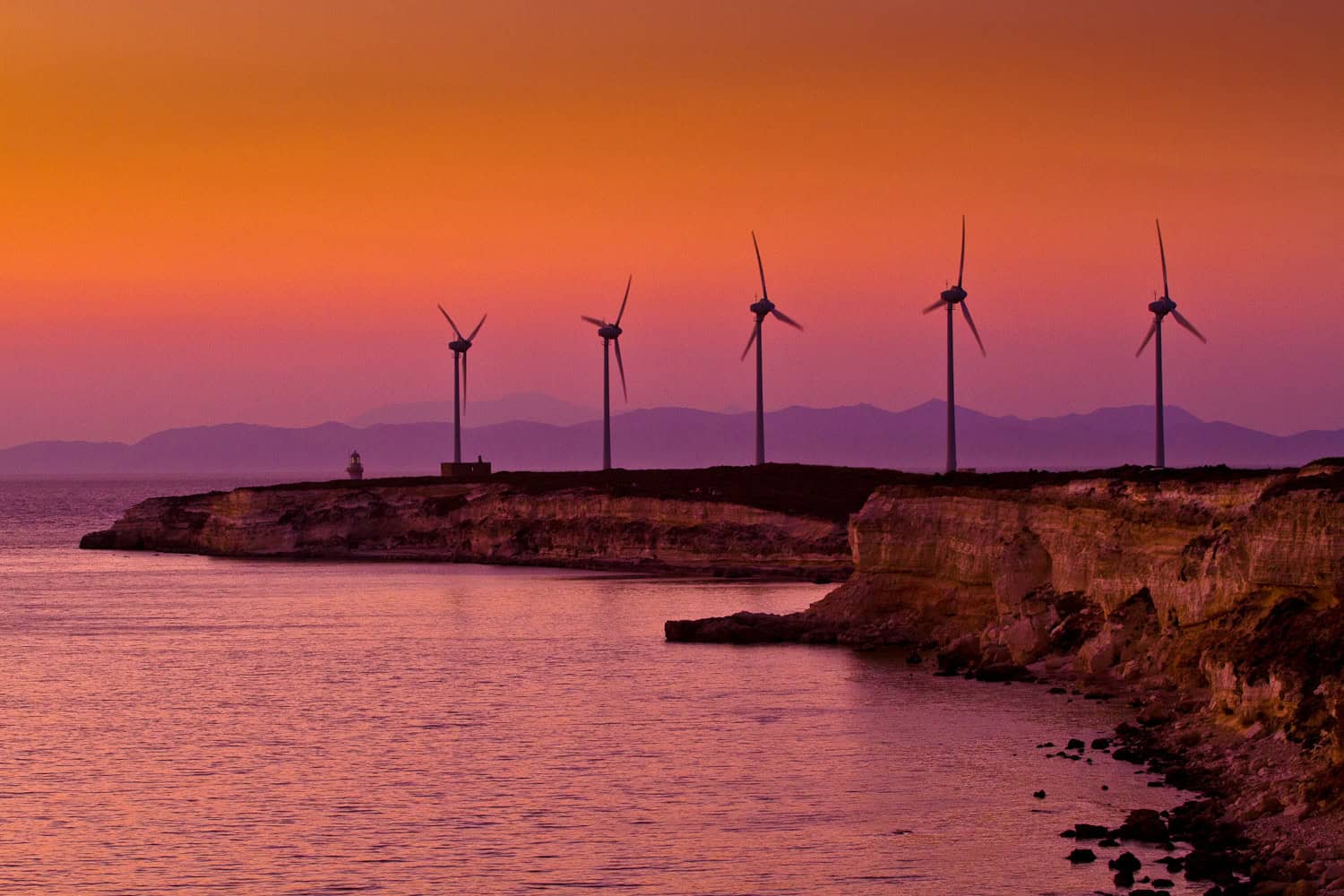 2000 yılında adaya kurulan ve adanın ihtiyacından yaklaşık 30 kat fazla enerji üreten 17 rüzgar gülü adanın batı ucunda bulunmaktadır. Motorlu taşıtlar ile gidiş yolu oldukça keyifli olan rüzgar güllerine bisiklet ile ulaşmak, engebeli yapısı sebebiyle yüksek kondisyona sahip olmayan kişiler tarafından pek keyifli olmayacağı gibi güneş battıktan sonra ilçe merkezine kadar aydınlatma olmadığı için tehlikeli de olabilir.