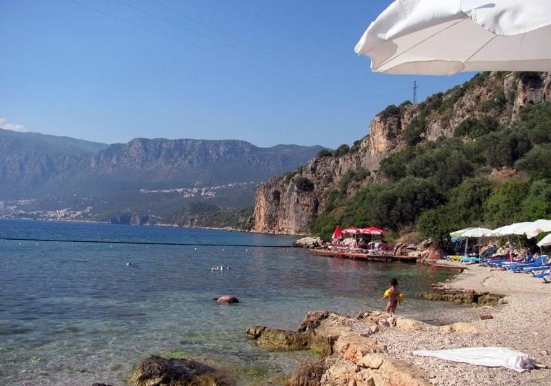 Kaş merkezde konaklıyorsanız, burası denize girebileceğiniz en yakın yerdir. Yanında fazlaca tesis bulunuyor. İsterseniz manzara eşliğinde bir çay kahve molası için de tercih edebilirsiniz. Plajı kum veya çakıl denilebilecek kadar büyük değil. Kayalıklar üzerine kurulmuş tahta iskeleleri kullanarak denize ulaşabiliyorsunuz. Merkeze yakınlığı sebebiyle deniz tutkunları için çok tercih edilen, kent ile iç içe gözde bir mekandır.