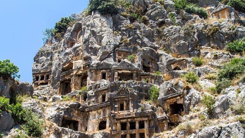 Nekropoller, daha kolay anlaşılır haliyle toplu mezarlar, kaya mezarları da kentte en güzel fotoğraf kareleri yakalayacağınız yerlerin başında geliyor. Dik ve sert kayalar üzerine, oldukça süslü şekilde, iç içe, üst üste oyulmuş olan bu kaya mezarlarının insan eliyle yapıldığına inanamayacaksınız.